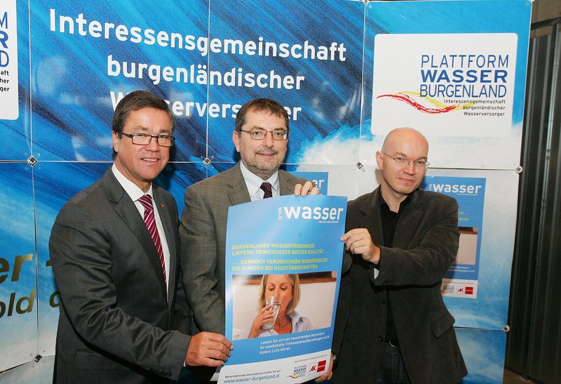 Für die Vertreter der Bgld. Wasserversorger ist klar: Das von den öffentlichen Versorgern gelieferte Trinkwasser weist eine hervorragende Qualität auf. Die Untersuchungen des an die Bevölkerung abgegebenen Trinkwassers erfolgen durch akkreditierte Untersuchungsanstalten, eine laufende übergeordnete Kontrolle der Trinkwasserqualität erfolgt durch die Lebensmittelaufsicht des Landes. Dennoch wird von hausierenden Vertretern für zweifelhafte Wasseraufbereitungsanlagen versucht die Kunden zu verunsichern, und diese durch den Verkauf unnötiger und teurer Anlagen abzuzocken. Mag. Christian Koisser von der AK meint, „Es gibt die Möglichkeit, von einem – irrtümlich unterfertigten Vertrag betreffend den Ankauf einer solchen Trinkwasseraufbereitungsanlage – zurück zu treten.“ Im Rahmen der heutigen Pressekonferenz wurden ein von der Plattform Wasser Burgenland gemeinsam mit der Arbeiterkammer neu gestalteter Informationsfolder und ein Plakat präsentiert, mit deren Hilfe eine noch effizientere Aufklärung der Bevölkerung bzw. der Konsumenten erfolgen soll. Der Obmann der Plattform Wasser Burgenland, DI Dr. Helmut Herlicska erklärt dazu: „Lassen wir uns unser Trinkwasser nicht schlechtreden. Noch viel weniger lassen wir uns von den sogenannten Wasserkeilern das Geld aus der Tasche ziehen.“ Sanierung der Bauwerke in der Wasserversorgung sind große Herausforderungen für Wasserversorger